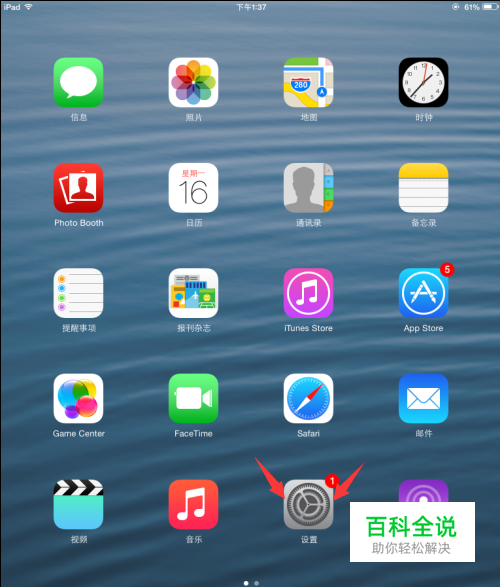 有苹果手机或者苹果的其他数码产品的人都知道,苹果是只有一个home键的,长期只使用这样一个键进行返回到桌面儿等其他指令,很容易导致手机和其他电子设备的提早损坏,其实苹果手机和ipad等电子设备是有一个辅助功能的,通过这个辅助功能可以在你的ipad上面出现一个小圆点,有了这个小圆点你就可以进行返回桌面截屏等等其他各种操作了,是不是非常的方便呢?那么下面小白就来教大家如何将这个小圆点设置出来吧。