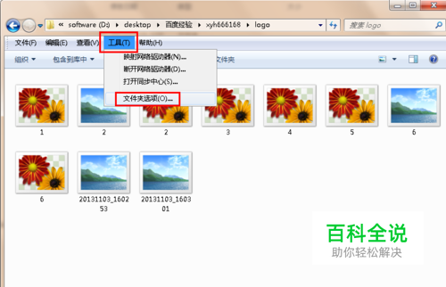 点击菜单栏中的“工具”,打开工具子菜单,然后在子菜单中选择“文件夹选项”