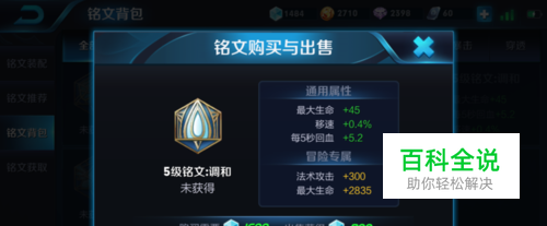 铭文搭配三、梦魇+心眼+调和 梦魇:物理防御+2.3、最大生命+33.7、攻击速度+1% 心眼:法术穿透+6.4、攻击速度+0.6%、每5秒回血+5.2。 调和:最大生命+45、移速+0.4%、每5秒回血+5.2。