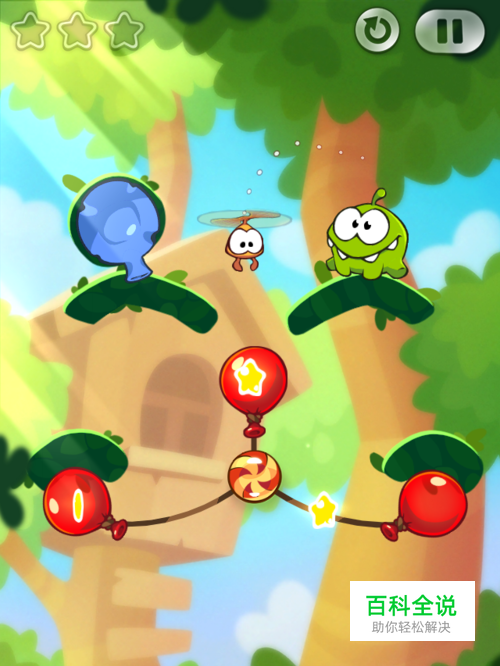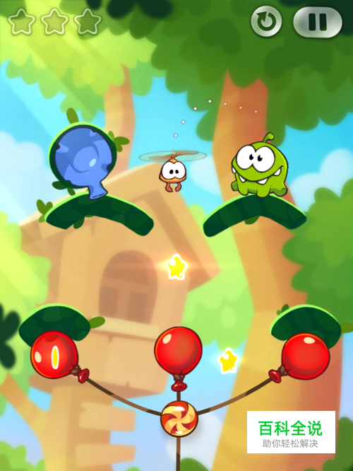 切断下面的绳子,气球上升。得到星星之后,打破泡泡