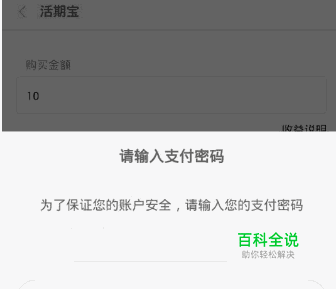 输入你要购买多少钱的活期宝,建议买一百块以上。我这里为了演示就购买十块钱好了。