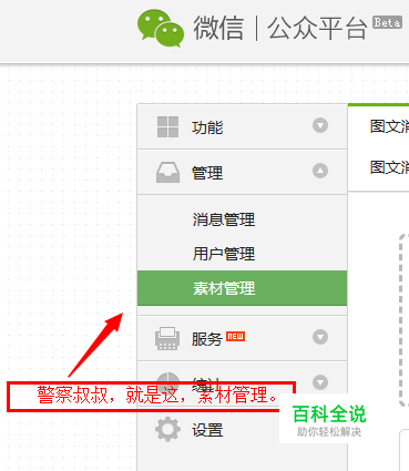 进入微信公众平台,找到素材管理。