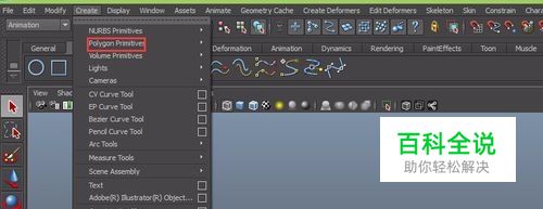 找到creaet菜单,在其下拉菜单里找到polygons primitives选项,如图所示: