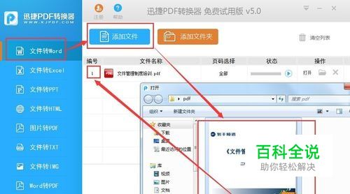 2.添加需要转换的PDF文件,二种方法供你操作,一种是直接把PDF文件拉到软件上面来,另一种就是选择软件上面的“添加文件”按钮,上传文件。用户可以随意选择。