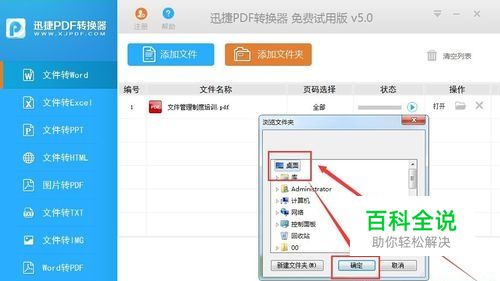 3.设置转换Word的文档存档位置。一般PDF软件默认的是电脑的桌面——自定义文件夹,你也可以点“浏览”功能来设置自己个性化的文件夹 。