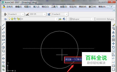 选中左侧直线与圆的交点作为打断点,这时我们会发现图形和之前是一样的,其实完全不是这样的。
