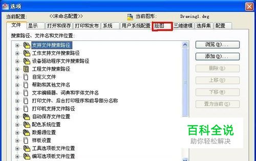 点击“选项”窗口上方的“绘图”这一版块