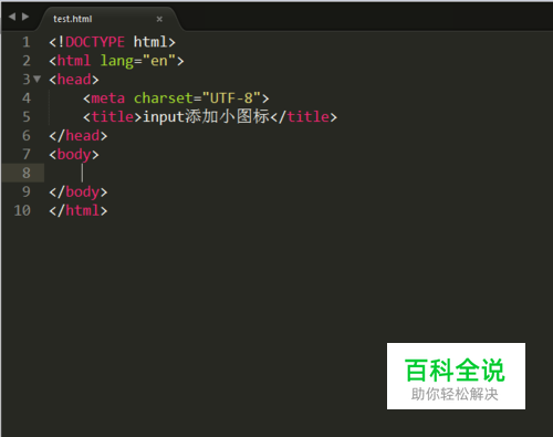 找到<title>标签,在这个标签后面新建一个<style>标签用于设置标签的类属性。 设置属性代码: <style> .div-bor{ position: relative;width: 200px; } .icon-user{ position: absolute;left: 0;z-index:5; background-image: url(user.png); /*引入图片图片*/ background-repeat: no-repeat; /*设置图片不重复*/ background-position: 0px 0px; /*图片显示的位置*/ width: 20px; /*设置图片显示的宽*/ height: 20px; /*图片显示的高*/ } </style> 如图: