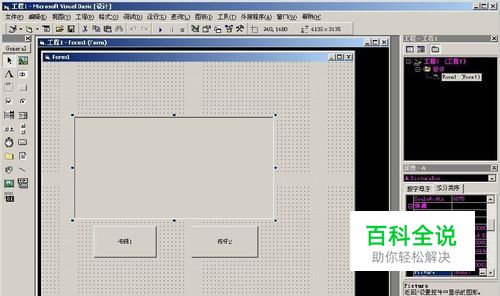 设置一个图片框和两个命令按钮,将图片框的名称改为A,按钮的caption改为按钮1,按钮2.