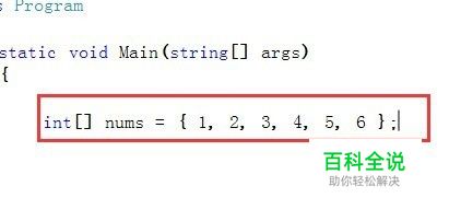 接着我们在for循环里调用输出命令 Console.WriteLine(nums[i]);,来输出每个元素