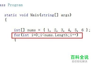 最后用命令Console.WriteLine(i);来输出每个元素,注意变量是i。i就是遍历nums数组的一个中间变量