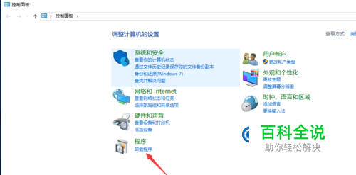 在控制面板中,我们找到程序,然后选择卸载程序,如图示。