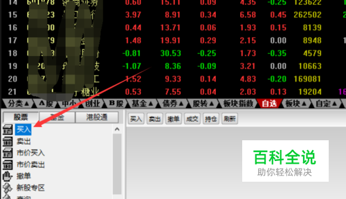 成功登录后,直接点击左下角股票选项卡里的【买入】,如下图所示。