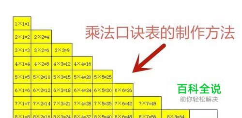 乘法口诀表的制作方法——九九乘法口诀表