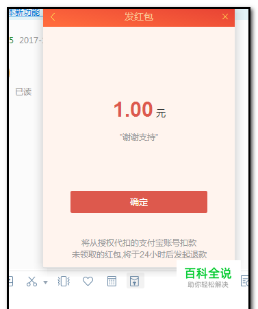 点击:店铺聊天红包 右侧页面,弹出相关的内容;这时描述了,用这个店铺红包适用的场景;比如,补邮费,差价等; 然后,我们点击:授权支付宝发红包