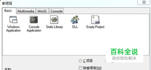 在名称的输入框中可以为自己的项目取个名字。如果是使用C语言的话,就把“C项目”前的单选框点中。单击确定会出现一个框,提示把刚才建立的项目保存在哪里。
