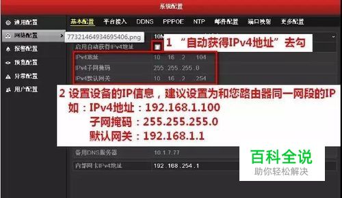 首先先把硬盘录像机的ipv4地址改了,硬盘录像机的ip地址是多少,摄像机的IP地址就是多少 打开主菜单—系统配置—网络配置—基本配置,固定录像机的IPV4地址。
