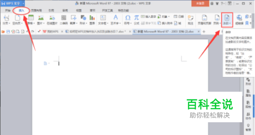 2 、打开文档后,找到“插入”菜单命令,并点击。再往右上方查找,找到“水印”的工具按钮,将鼠标放在图标上则可以清楚地看到水印命令的作用介绍。