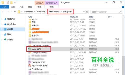 现在看到了“Excel2016”快捷方式所在路径。