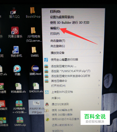 将你要进行调节的图片找到然后点击鼠标右键,单击【编辑】选项。