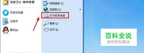 我们点击开始菜单,然后点击这里的打印机和传真打开。