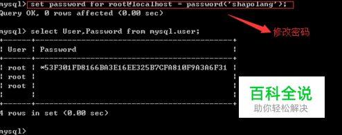 新建一个文件 假设 /tmp/passwordchange.txt,写入如下内容 SET PASSWORD FOR 'root'@'localhost' = PASSWORD('HereYourNewPassword');