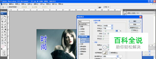 选择直排文字工具,输入文字,设置字体的颜色为深蓝色,勾选外发光的模式,设置斜面浮雕的选项,设置为内斜面,设置深度为215%,设置外发光的颜色为白色,调整好点击确定。