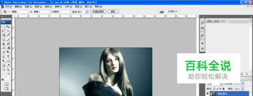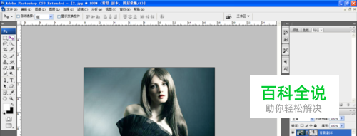打开PS。按下crl+O打开图片。如图。人物图片中胳膊的部分地方暗,呈现出灰色的阴影图案。如图