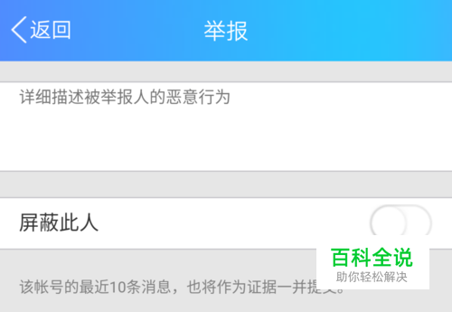 选择好理由后,需要进一步详细描述被举报人的行为,写好后点击提交