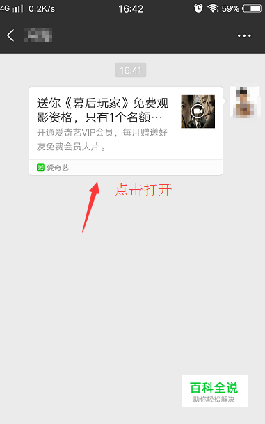 这个就是你发给好友的微信链接,让好友打开它,出来这个画面,在右上方有一个礼物的图标,点击立即领取就OK了。(前提:好友必须要登录自己的爱奇艺账号)