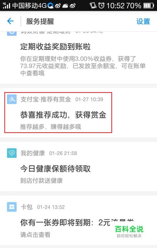 进入“服务提醒”的页面,在里面找到以前邀请他人的信息记录