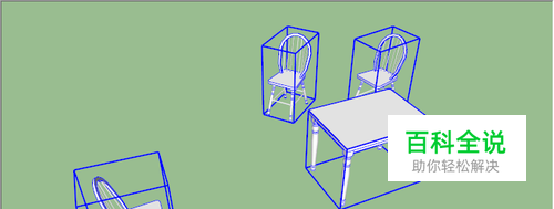 Enter后即可创建一颗桌椅组合组件,此时点击模型是出现大的立方体边框(表示已经创建组件),如下图