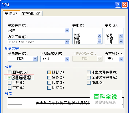 在弹出的“字体”对话框中勾选“双删除线”,之后点击“确定”