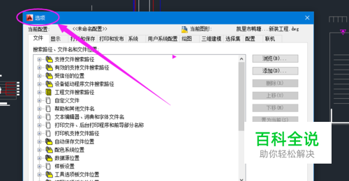打开CAD之后,通过菜单栏的“工具”,然后选择最后的选项,便会弹出选项对话框,如图所示。