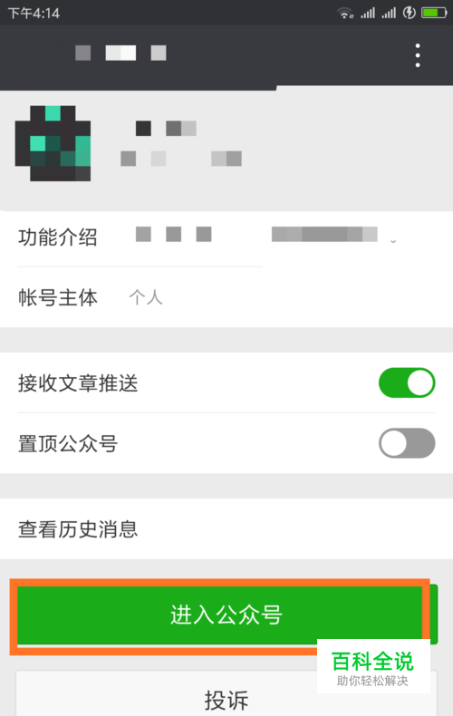 找到自己喜欢的订阅号文章,点击文章顶部的公众号名称进行关注