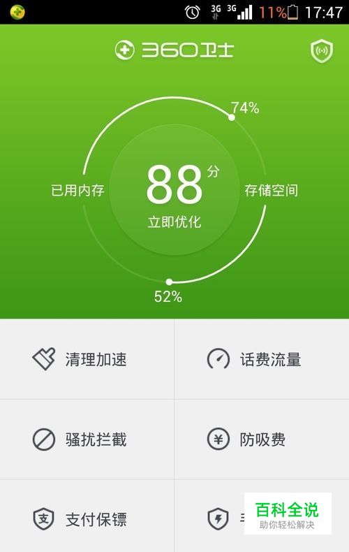 打开手机上的360卫士后,可以看到里面的常用功能的一些运用,如清理加速,话费流量等。
