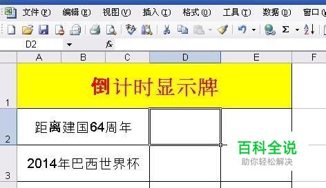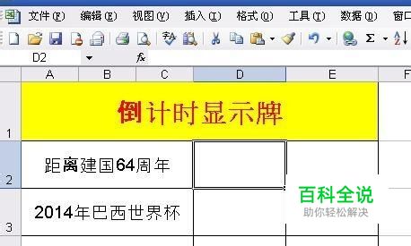 如何利用excel制作简单的倒计时显示牌,在这里先举个例子,比如距离中国建国64周年和2014年巴西世界杯足球赛。