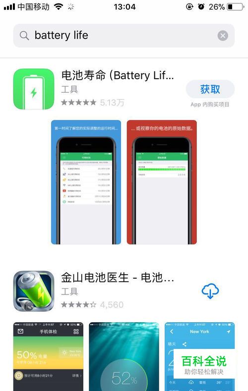 下载检测的软件: 我们要查看电量可以使用的时间,包括电池的损耗情况等,需要先下载一个软件,如图所示的软件,我们直接搜索名字,在APP商店找到进行下载就可以了。