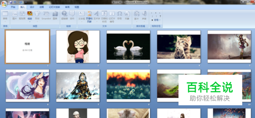 这时将会在PPT中看到所选的图片都创建为了一本相册,把幻灯片切换到浏览视图,可直接观看每一张幻灯片的效果。