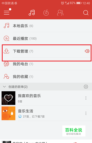 第一步进去主界面之后,先选择歌曲,这里选择已经下载的歌曲,点击下载管理