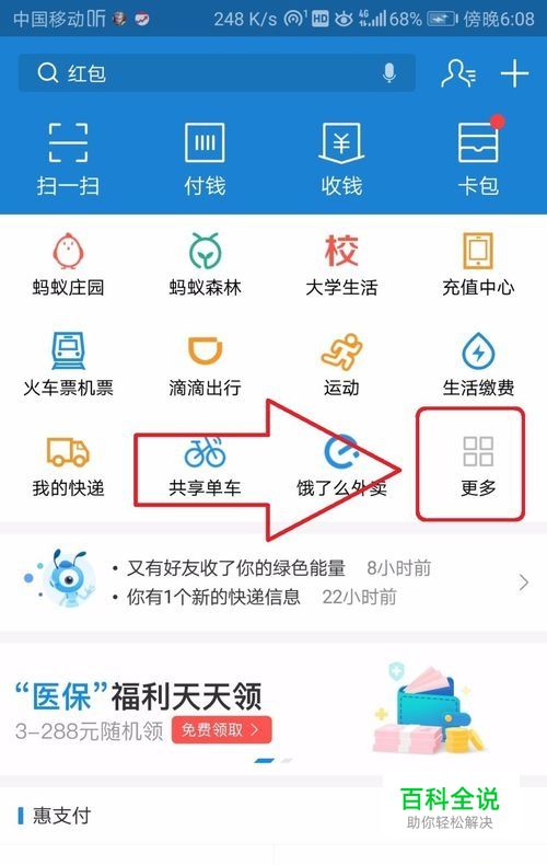 打开支付宝,在首页里选择更多的图标