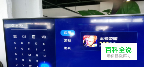 连接电源、开机,启动智能电视,打开当贝市场搜索王者荣耀游戏的首字母“WZRY”,点击下载-安装,并运行。