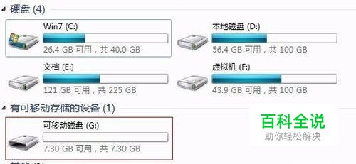 插入我们需要转换格式的U盘,查看U盘在电脑中所分配到的盘符,如下图所示: