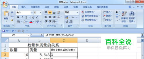 Excel 2007如何提取单元格小数点后第N位数字