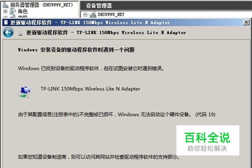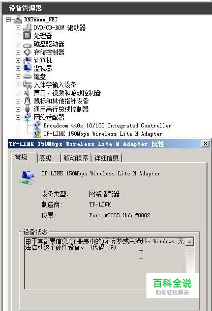 1-我们在设备管理器看到黄色感叹号出现了“于其配置信息(注册表中的)不完整或已损坏,Windows 无法启动这个硬件设备。 (代码 19)”,这样是无法启用这个设备的;