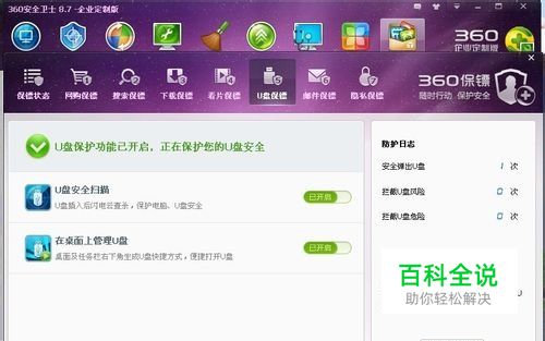 学会防止移动硬盘被exe病毒的侵染,我们可以使用360杀毒软件的U盘防护功能。为U盘设置相关的防护保镖。