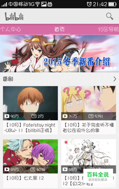 然后在屏幕上向左滑动,查看分区导航,在这里你可以选择动画、番剧、电影、电视剧等类型。