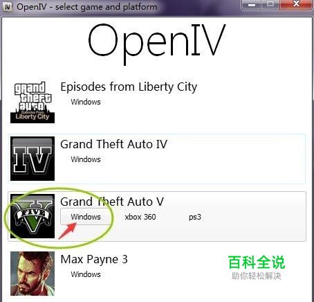 先安装OpenIV,开启OpenIV,选择GTAV的Windows版本