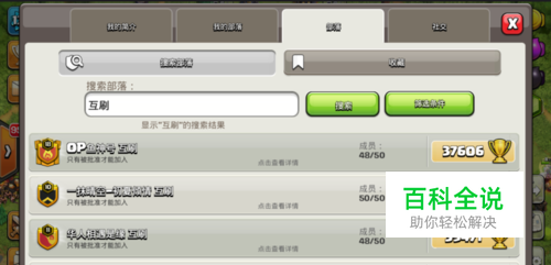 进入部落搜索界面,输入“互刷”,可以搜出许多互刷的部落
