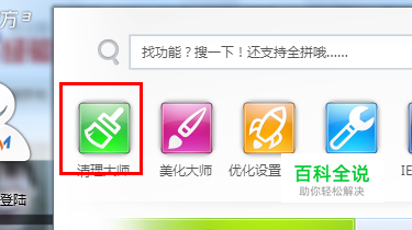 打开软件之后,在上方的工具栏中有一个清理大师的功能组件,单击打开。